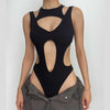 - Mouwloze Rugloze Bodysuit Met Uitsnijdingen In Effen Kleur Mouwloze Rugloze Bodysuit Met Uitsnijdingen In Effen Kleur